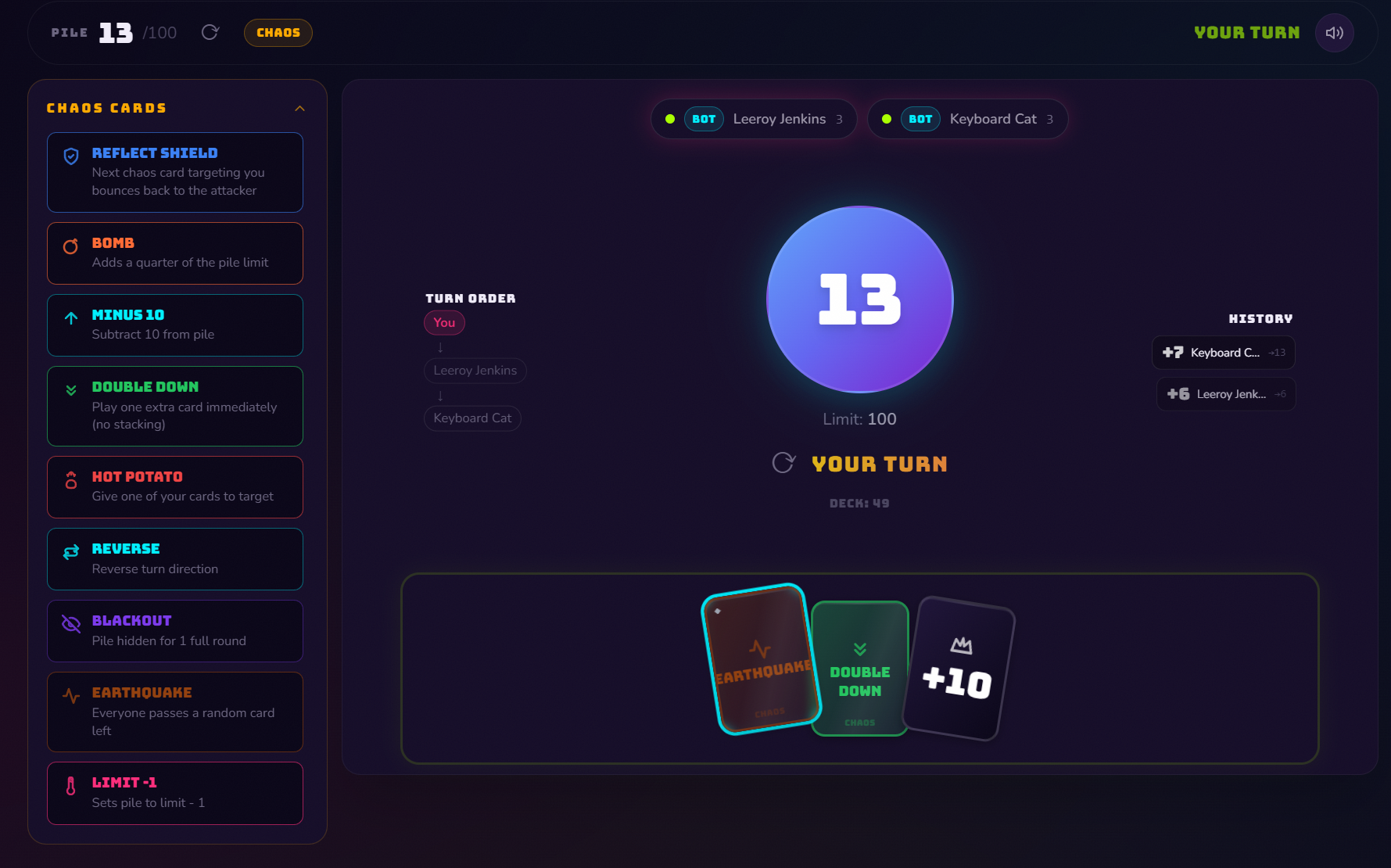 - Chaos (Premium) — Full chaos deck, anything can happen